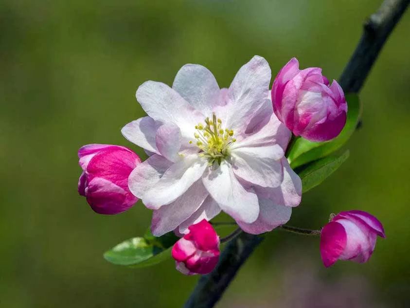 八棱海棠剛生出的花朵呈紅色,慢慢的展開后,由紅色變成粉紅色,再后來會變成粉白色。西府海棠的花顏色為花粉紅至紫紅色,花姿瀟灑,花香濃郁,沁人心脾。